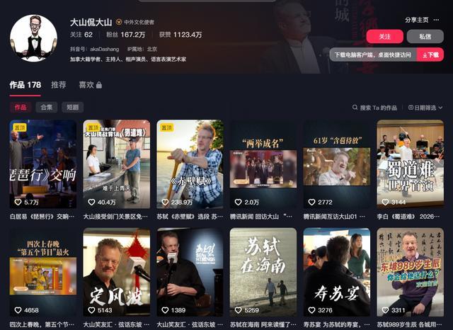 他依旧会在账号上分享自己的日常,聊聊对中国文化的理解和感悟,还创办了文化交流工作室,打造了《大山侃大山》这个特色节目。
